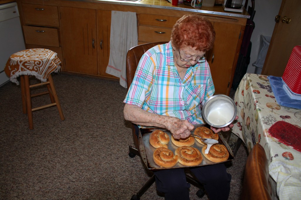 Even back East Elfriede was know for her cinnamon rolls. She made them for special occasions: people moving in, people moving out, birthdays, weddings, births. She made cinnamon rolls for people in the neighborhood, people at church, people Carolyn worked with and people I worked with.