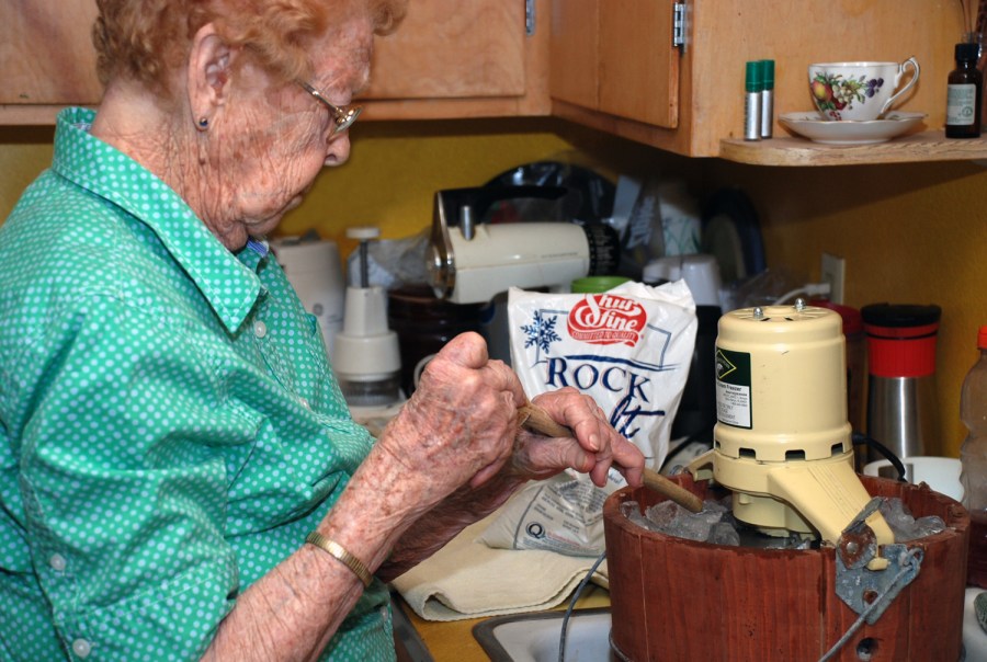 Grandma making ice cream