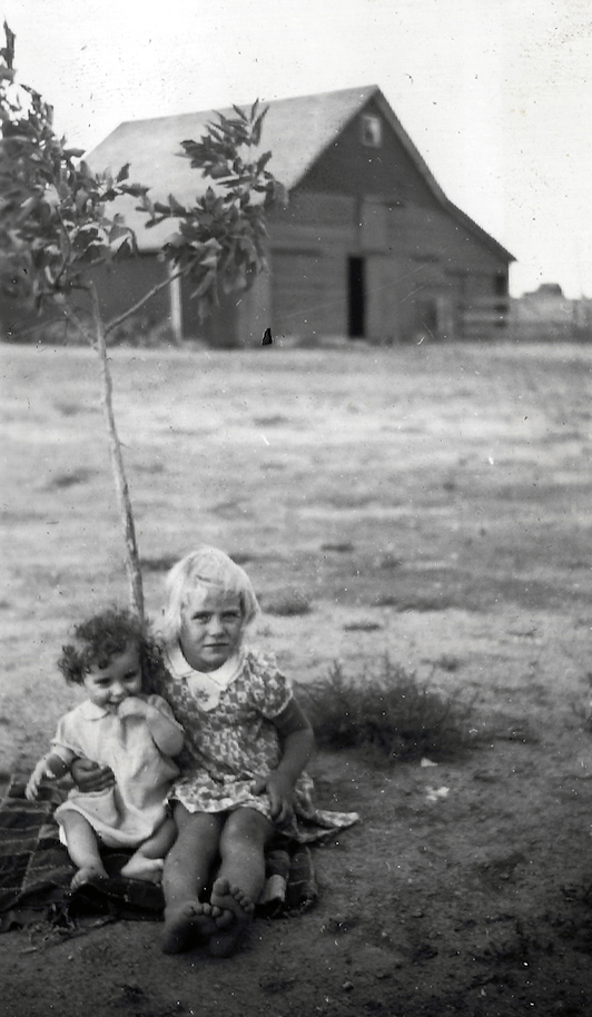 Carolyn & Pam by red barn